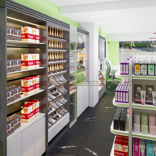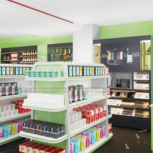 Diện tích mặt bằng nhỏ hẹp đòi hỏi việc sắp xếp quầy kệ cần kiến trúc sư phải đưa ra giải pháp setup khoa học, tạo thêm nhiều không gian trưng bày. Do đó, chúng tôi tư vấn bố trí các kệ hàng cao sát tường và kệ thấp ở trung tâm tạo thành những lối đi thuận tiện cho nhân viên và khách hàng. Điều này khiến cho thiết kế siêu thị mini thêm phần ngăn nắp, gọn gàng hơn.