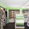 Các kiến trúc sư cũng rất khéo léo bố trí tủ treo tường bằng gỗ MDF chống ẩm cốt Thái phủ melamine giúp tăng khả năng trưng bày sản phẩm cho cửa hàng.