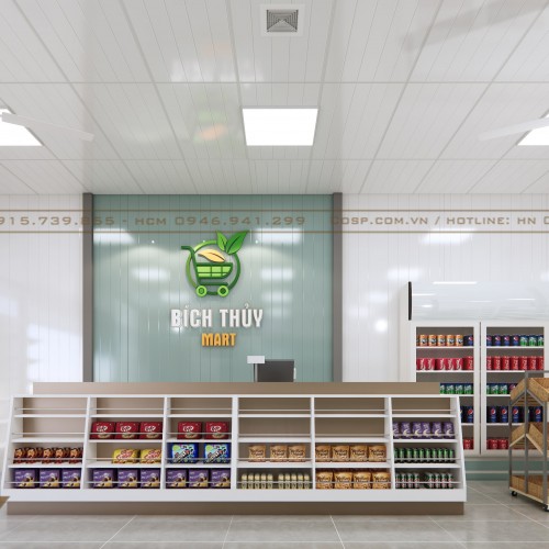 Thiết kế siêu thị Bích Thủy Mart có sự tối ưu trong công năng, gọn gàng trong bố cục. Mỗi chi tiết đều được tính toán kỹ lưỡng nhằm mang lại không gian vận hành hiệu quả cho chủ đầu tư và trải nghiệm mua sắm dễ chịu cho khách hàng.