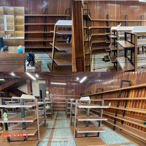 Nhằm tối ưu không gian, chúng tôi bố trí hệ kệ sát tường khung sắt sơn tĩnh điện, với các đợt gỗ chắc chắn. Việc sử dụng những những vật liệu này chẳng những tạo sự ngăn nắp, gọn gàng mà còn giúp sản phẩm không bị rơi rớt, ảnh hưởng đến hiệu suất kinh doanh.