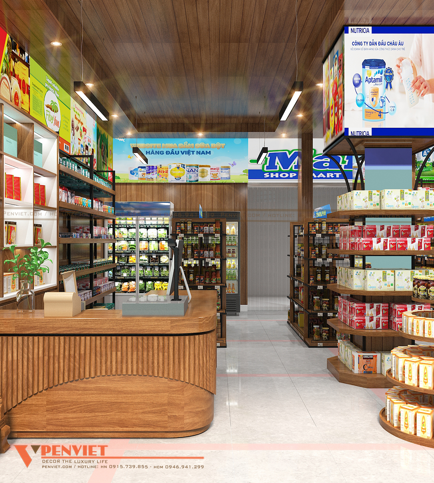 Bạn thấy sao về mẫu thiết kế siêu thị mini này của PenViet? Nếu có mong muốn setup một không gian kinh doanh với ý tưởng độc đáo, mới lạ thu hút khách hàng thì hãy liên hệ với PenViet ngay nhé!