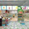 Ngay chính giữa lối ra vào của siêu thị được bố trí các mẫu quầy kệ trưng bày đủ kiểu dáng và kích thước. Từ quầy xoay tròn đến kệ dài đặt sát tường, kệ 4 tầng 2 mặt đảm bảo việc trưng bày sản phẩm đa dạng hơn. Để tăng sự chuyên nghiệp, chủ siêu thị bố trí hàng hóa theo từng chủng loại, thương hiệu giúp khách hàng dễ chọn lựa.