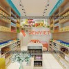 Lựa chọn cách thiết kế nội thất shop với dãy kệ thấp phía dưới và một dãy kệ dài khác sát trần nhằm tạo được khoảng không ở giữa để tạo độ thoáng được tốt hơn. Khách hàng sẽ không cảm thấy quá gò bó, chật chội vì một không gian nhỏ như thế này. Bên cạnh đó, một chiếc giá đứng thấp nhỏ được đặt ở giữa cửa hàng để gia tăng diện tích trưng bày được nhiều hơn.