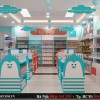 Bước vào khu vực bên trong, là khu vực sữa và các sản phẩm thiết yếu dành cho bé. Chúng thôi thiet ke sieu thi với kệ gỗ trưng bày thành những kệ hình thú khá ngỗ nghĩnh và vui mắt.
