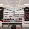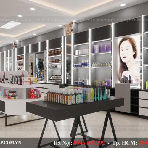 Các kệ trương bày đặt 2 bên tường đều được kết hợp hài hòa giữa 2 tông màu đen và trắng.