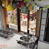 Phía trước mặt tiền còn được bố trí các dãy bàn ghế ngồi vỉa hè phục vụ khách. Bàn làm từ chất liệu khung sắt sơn tĩnh điện, ghế làm từ chất liệu hợp kim nhôm và sơn màu đen thu hút người nhìn.