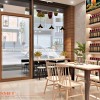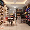 Tiếp đến là quầy pha chế làm từ gỗ MDF cốt xanh Thái Lan chống ẩm thiết kế nhiều ô nhỏ để trưng bày bánh kẹo. Khi khách hàng đến order hay thanh toán tiền sẽ cảm thấy thu hút với những gói kẹo nhỏ xinh được sắp xếp ngăn nắp. Từ đó kích thích nhu cầu mua sắm của họ và đem đến cho cửa hàng nguồn doanh thu tốt.
