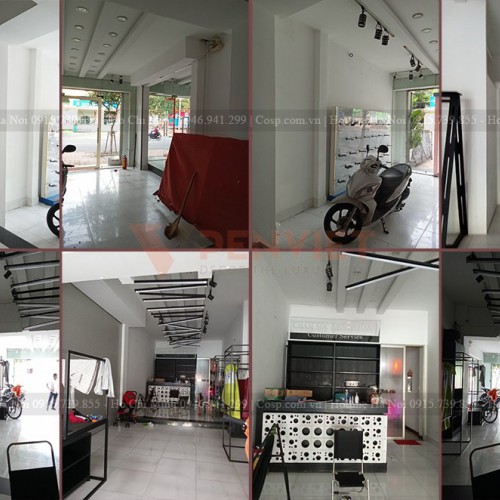 Để không gian có sự liền mạch, thoáng rộng, chúng tôi đã loại bỏ phần cửa kính ngăn 2 mặt bằng và thay vào đó là sử dụng vách gỗ melamine đóng hộp tiện lợi. Thiết kế này giúp không gian có sự gợi mở và trang trí cửa hàng thêm bắt mắt.