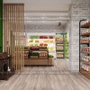 Ngay khi nghe tên thương hiệu, chắc hẳn bất kỳ ai cũng sẽ hiểu được sản phẩm mà cửa hàng này đang kinh doanh. Với dự định hướng đến các mặt hàng thực phẩm chay, dự án thiết kế siêu thị Chay Tốt Market lựa chọn cho mình gam màu xanh lá và nâu gỗ tự nhiên rất phù hợp.