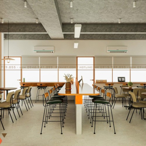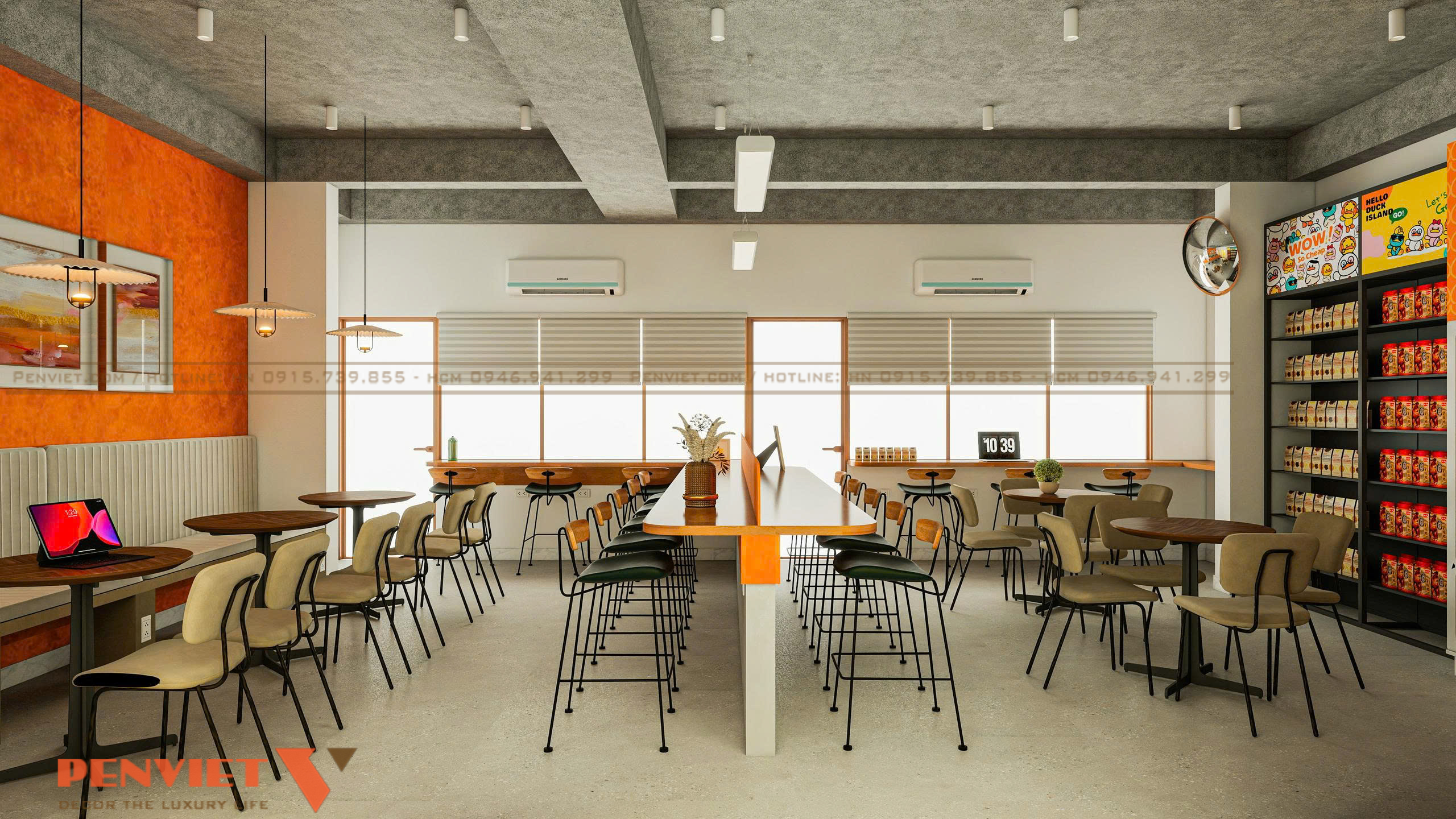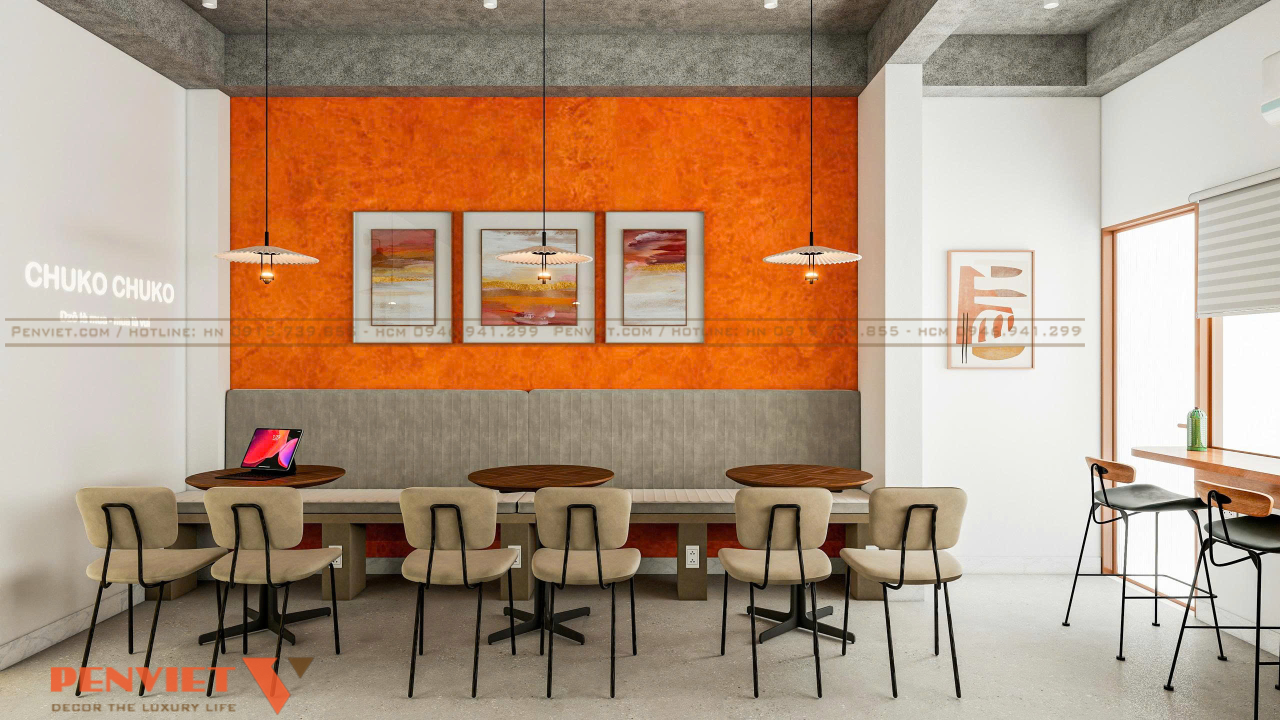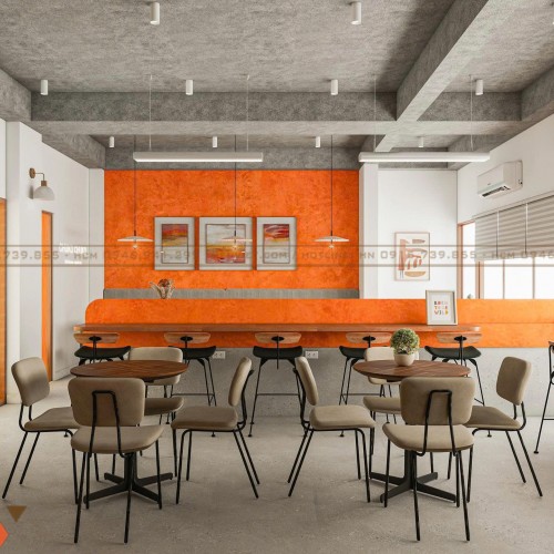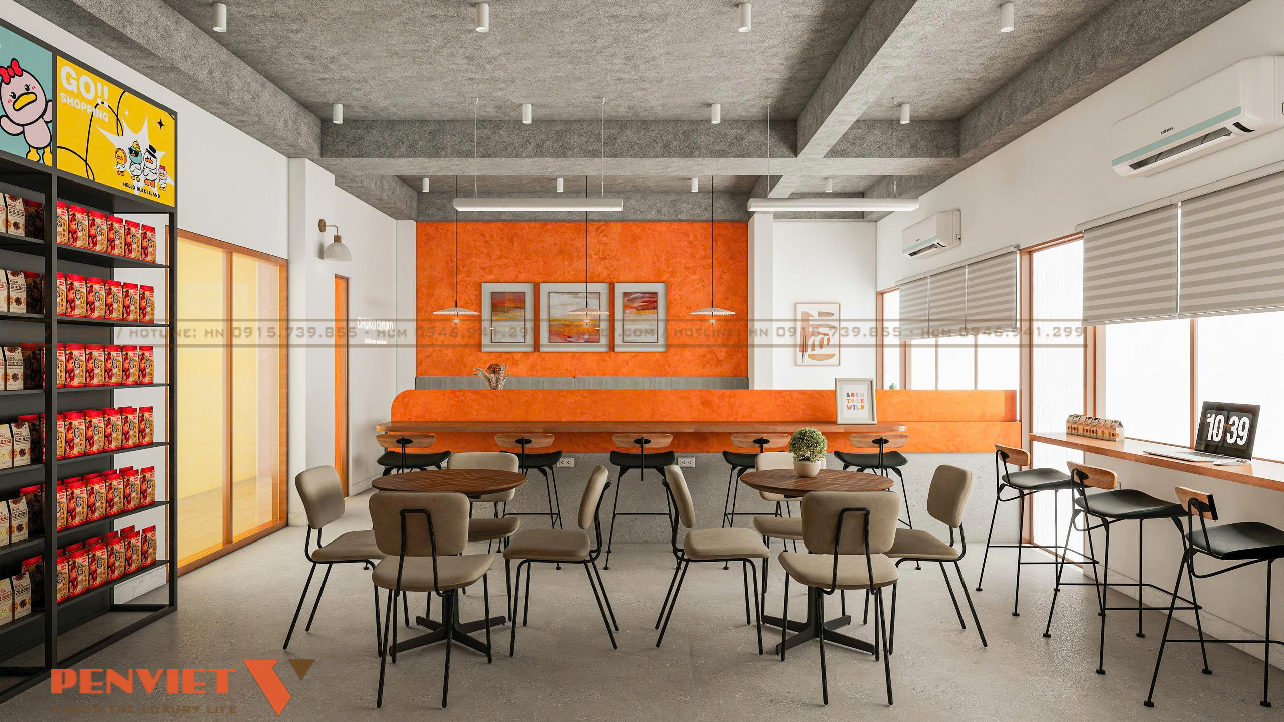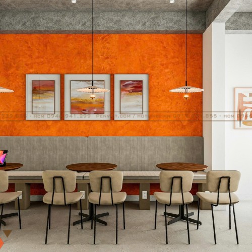 Tường và trần: xử lý sơn chống ẩm, kết hợp các mảng màu thương hiệu để tăng tính nhận diện.