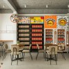 Các mảng tường trang trí bằng hình minh họa vui nhộn, như nhân vật hoạt hình, khẩu hiệu ngắn gọn. Tạo nên tinh thần năng động, thu hút nhóm khách hàng trẻ đúng với đặc trưng của mô hình kinh doanh đồ ăn vặt.