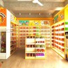 Hệ thống kệ trưng bày được thiết kế khung thép sơn tĩnh điện vàng kết hợp gỗ công nghiệp phủ melamine trắng, tạo nên hiệu ứng thị giác bắt mắt, giúp sản phẩm trở nên nổi bật hơn.