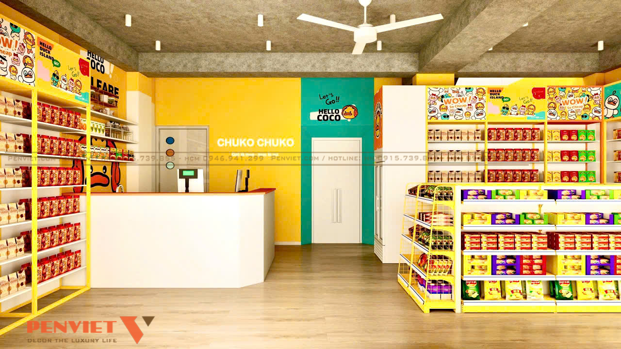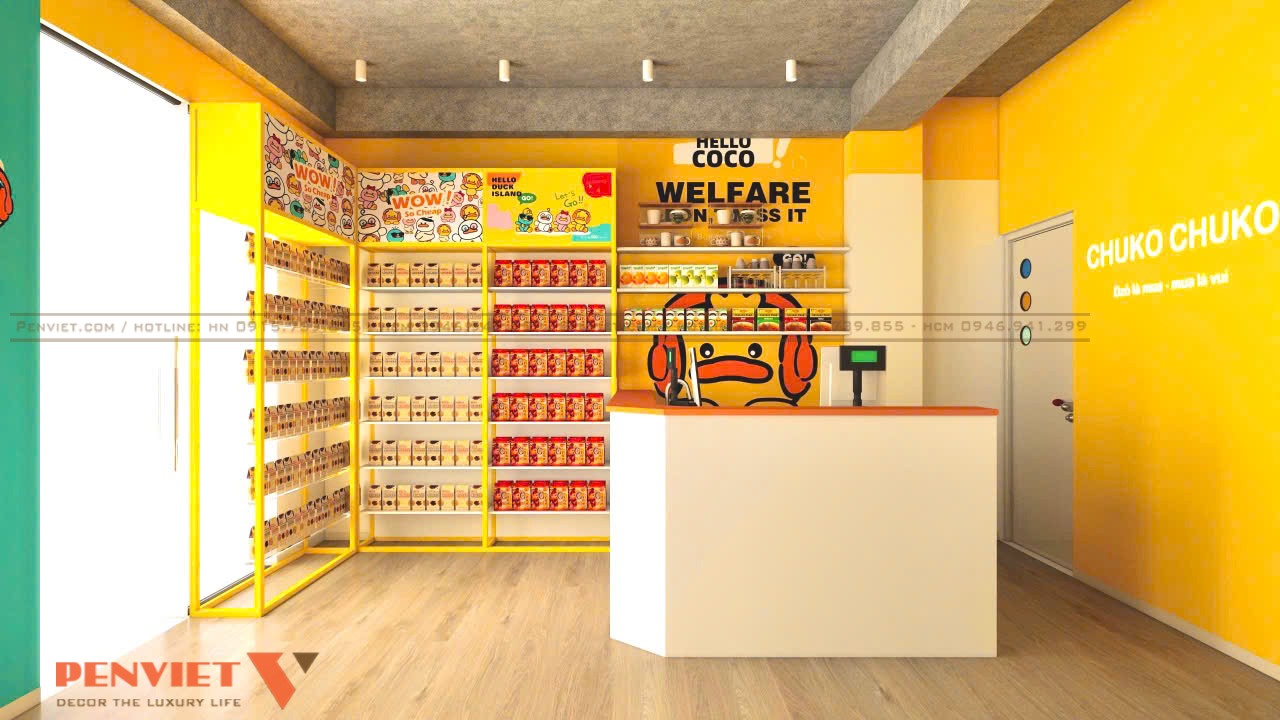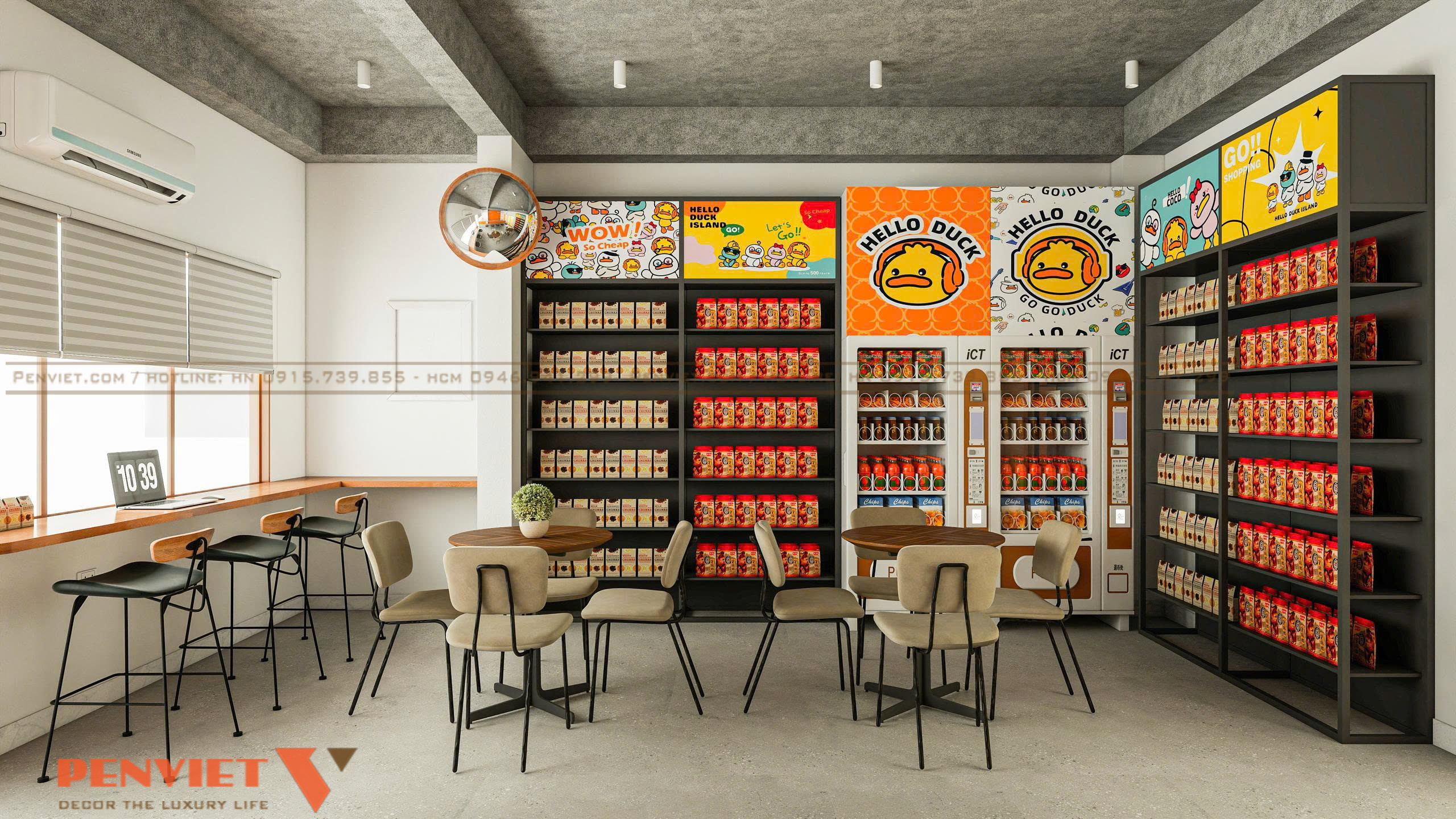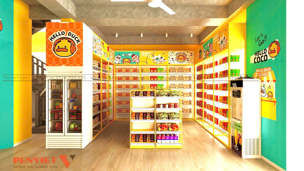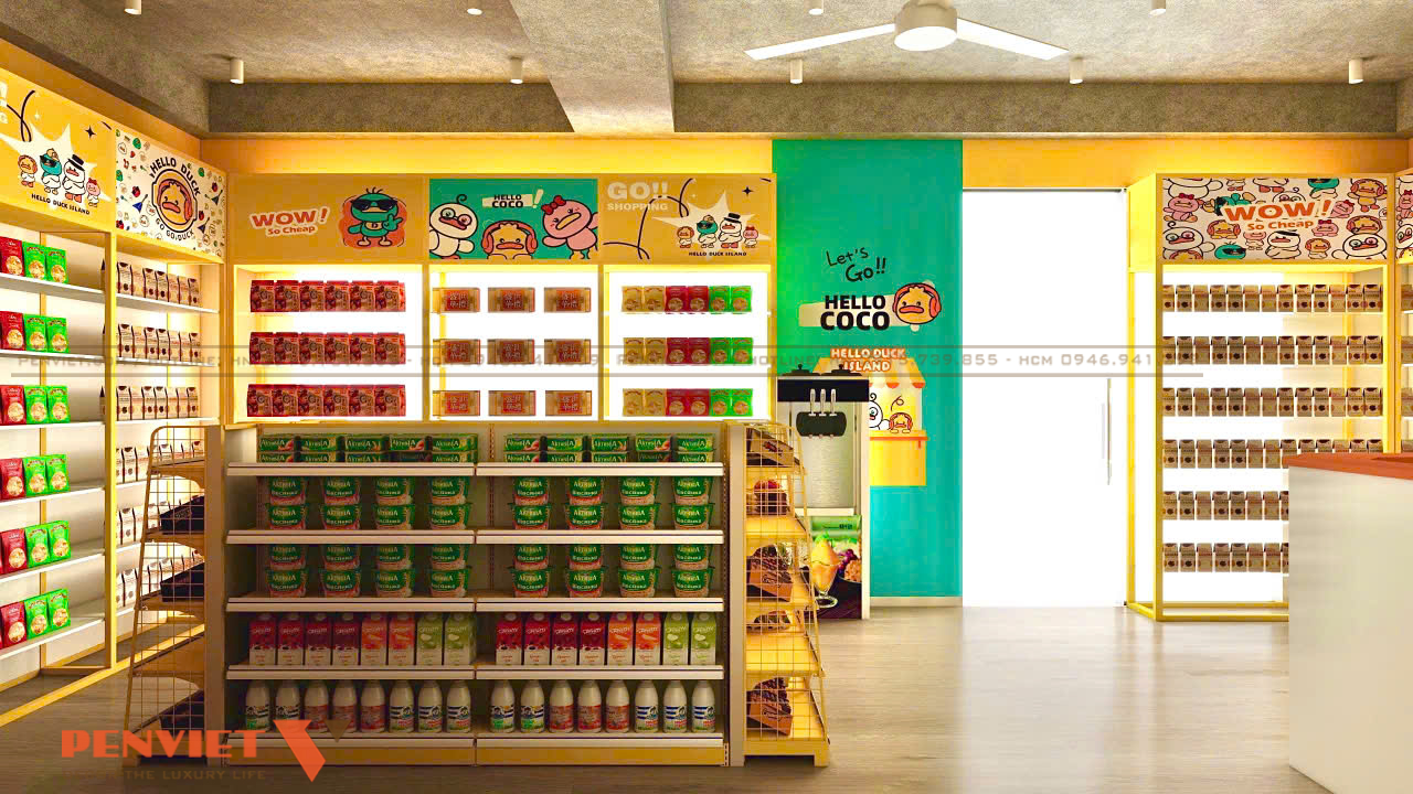 Kinh doanh siêu thị mini và đặc biệt là mô hình đồ ăn vặt, tiêu dùng nhanh đang trở thành xu hướng phổ biến tại các khu dân cư và đô thị lớn như Hà Nội. Với tệp khách hàng chủ yếu là học sinh, sinh viên, nhân viên văn phòng và các hộ gia đình trẻ, không gian bán hàng không chỉ cần đẹp mắt và hiện đại, mà còn phải tạo cảm giác vui tươi, gần gũi và dễ tiếp cận.