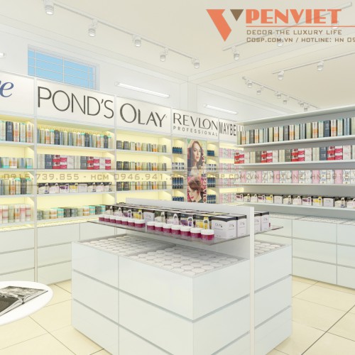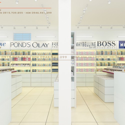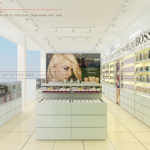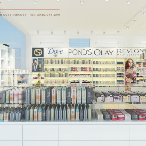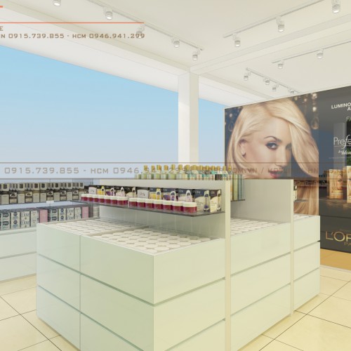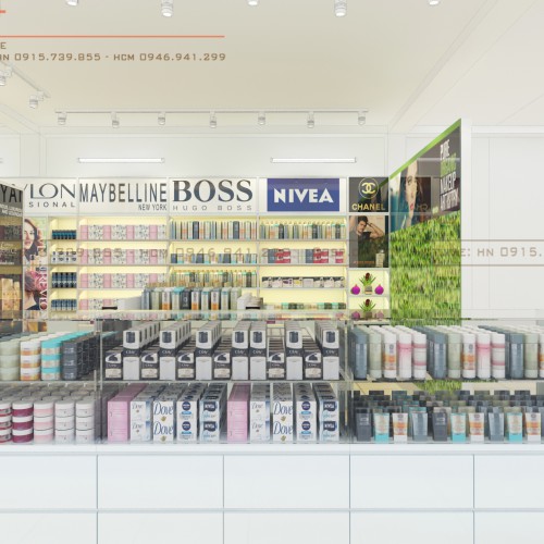Gian hàng mỹ phẩm trong thiết kế siêu thị Hương Long