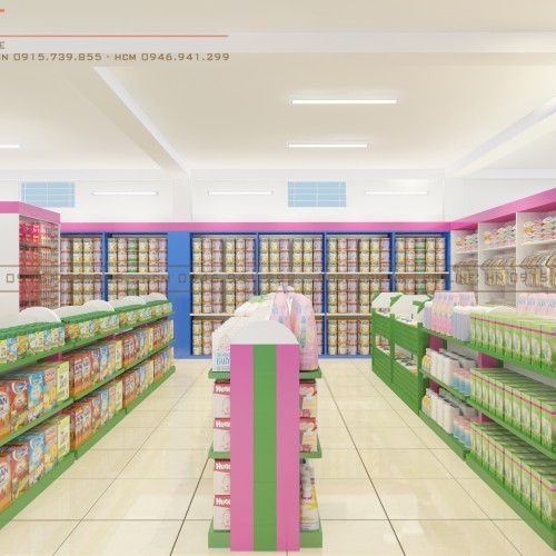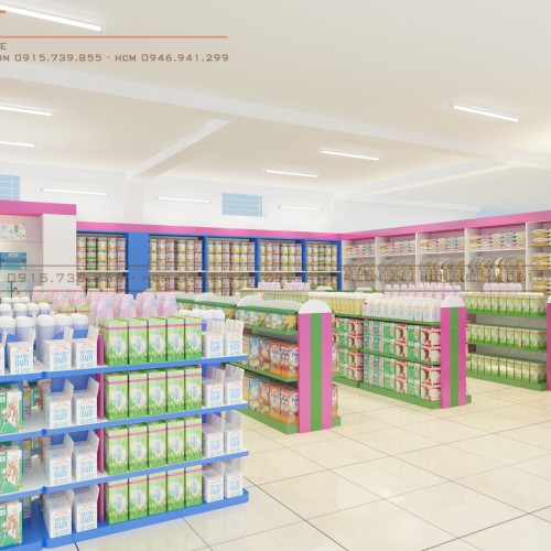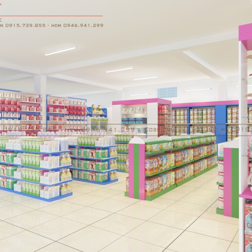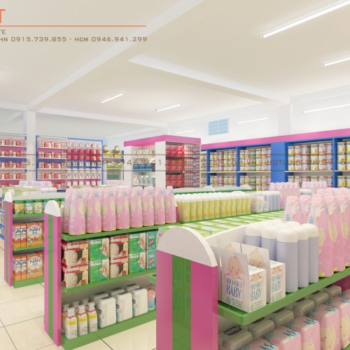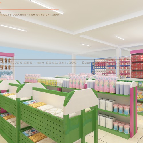 Gian hàng mẹ và bé trong thiết kế siêu thị Hương Long