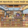 Biển bảng được thiết kế đơn giản nhưng vẫn giúp khách hàng dễ dàng nhận biết khu vực bày bán bánh kẹo và rượu vang nhập khẩu.