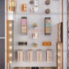 Ngoài ra, trong mẫu thiết kế shop này, chúng tôi có sử dụng thêm loại kệ đảo tròn giữa nhà để trưng bày các sản phẩm dạng đóng chai. Chiếc kệ này được thiết kế với phần đế gỗ MDF lõi xanh chống ẩm phủ melamine với khung thép sơn tĩnh điện cùng trụ inox 50mm. Kệ ốp cột cũng được làm bằng gỗ MDF với các đợt kính thường 10mm.