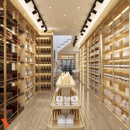 Phương án thiết kế được xây dựng trên nền tảng tối ưu từng mét vuông, chú trọng hướng di chuyển của khách hàng, điểm nhấn thương hiệu và cảm xúc khi trải nghiệm mua sắm. Ngôn ngữ thiết kế hướng đến phong cách hiện đại, chuyên nghiệp của cửa hàng thực phẩm cao cấp.