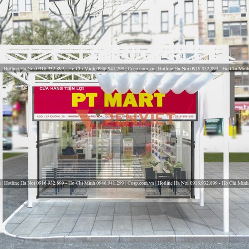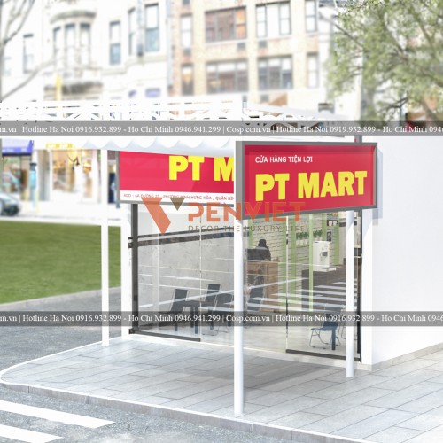 Mặt tiền trong thiết kế cửa hàng tiện lợi PT Mart