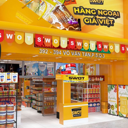 Màu vàng nổi bật của thiết kế siêu thị Swot