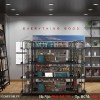Hệ thống quầy kệ tại đây được chúng tôi bố trí tương tự như tầng 1, với các kệ cao kê sát tường và những kệ nhỏ đặt ở trung tâm tạo thành những lối đi thoải mái. Chúng tôi dùng vật liệu chính là khung sắt sơn tĩnh điện màu đen, với kiểu dáng đơn giản nhưng nhờ chất liệu cao cấp nên vẫn giữ được tính thẩm mỹ cao kèm theo là nét sang trọng, chuyên nghiệp.