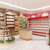 Kệ trưng bày trong thiết kế cửa hàng thực phẩm sạch với chất liệu gỗ làm nổi bật đặc tính tự nhiên, an toàn của sản phẩm. Hơn nữa, màu sắc và vân gỗ rất đẹp mắt mang tới tính thẩm mỹ cao cho mọi không gian của cửa hàng.