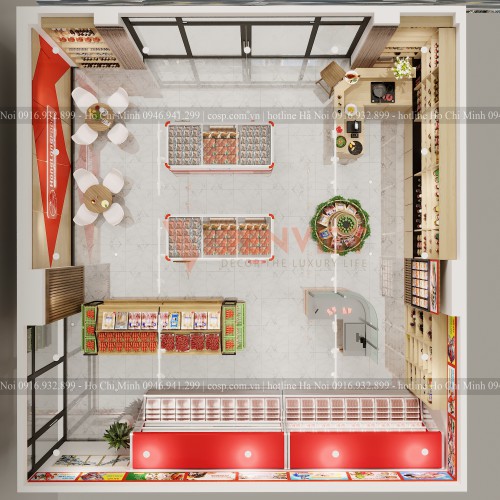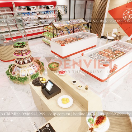 Khi thiết kế siêu thị mini cho anh Long, chúng tôi đã thực hiện xuyên xuốt toàn bộ những yêu cầu của một siêu thị chuyên nghiệp bao gồm: