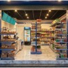 Không gian bên trong được chia thành các lối đi rõ ràng. Kệ trưng bày sắp xếp sát tường để tăng diện tích lưu thông. Lối đi đủ rộng để khách di chuyển thoải mái. Các nhóm sản phẩm được phân khu logic, dễ tìm.