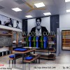 - Vật liệu: Gỗ MDF phun sơn PU, kệ sắt phun sơn tĩnh điện, đèn led, tranh