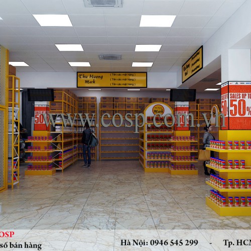 Rất nhiều khách hàng tìm đến Nội thất Cosp để thiết kế nội thất siêu thị. Vì sao vây? Trước hết điều đó làm chúng tôi rất vui vì vừa phục vụ được nhu cầu của khách hàng vừa làm dầy thêm được dự án vào bộ sưu tầm những mẫu thiết kế siêu thị đẹp trên Cosp.com.vn. Thiết kế siêu thị mini Thu Hương cũng nằm trong số đó và hôm nay xin giới thiệu những hình ảnh thiết kế 3D cùng những ảnh thi công thực tế của siêu thị này nhé.