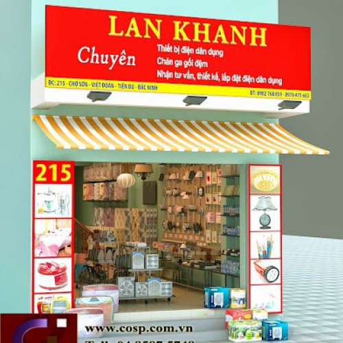 Cửa hàng được chia làm 2 khu riêng biệt phân cách bởi cầu thang. khu phía trước chuyên bày bán các thiết bị điện dân dụng, khu phía sau chuyên bày bán sản phẩm chăn - ga - gối -đệm.
