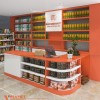 Hệ thống quầy kệ của cửa tiệm đều được thiết kế với kiểu dáng thanh lịch với khung sắt hộp sơn tĩnh điện chắc chắn, kết hợp với các đợt gỗ MDF phủ Melamine chống xước. Việc sử dụng hệ quầy kệ có tính chịu lực cao không chỉ giúp các kệ hàng luôn vững chắc, tránh bị rơi rớt, ảnh hưởng đến hiệu suất kinh doanh mà còn giúp xây dựng hình ảnh cửa tiệm gọn gàng, chuyên nghiệp, từ đó tạo dựng được niềm tin và thu hút khách hàng.