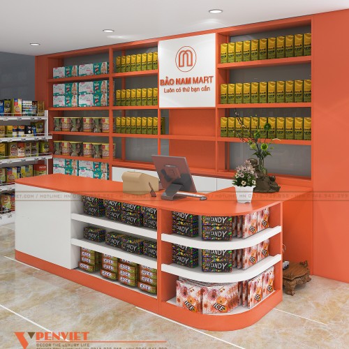 Bạn thấy sao về mẫu thiết kế siêu thị mini này? Nếu bạn cũng đang có ý định setup một cơ sở kinh doanh với những ý tưởng độc đáo, thiết kế hiện đại, tối ưu không gian diện tích mặt bằng thì hãy liên hệ với Penviet ngay nhé! Với tiềm lực sản xuất lớn mạnh, đội ngũ kiến trúc sư dày dạn kinh nghiệm, luôn nhiệt huyết với công việc, chúng tôi tự tin sẽ mang đến cho bạn sự hài lòng!