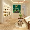 Tại khu vực sảnh trong mẫu thiết kế spa Thùy Vân cũng được chúng tôi tư vấn tận dụng để bố trí hệ tủ trưng bày nhằm giới thiệu những sản phẩm làm đẹp tại đây.