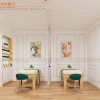 Để khu vực tư vấn này thêm phần sinh động và thu hút, Penviet sử dụng tranh in PP với phào chỉ nhựa mang hơi hướng Tân Cổ điển cho thiết kế spa.