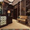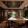 Không gian được kết hợp hài hòa giữa sàn gỗ, trần thạch cao cùng đèn led âm trần cùng đồ nội thất tone màu nâu trầm giúp không gian trở nên ấm áp và thư giãn cho khách hàng.