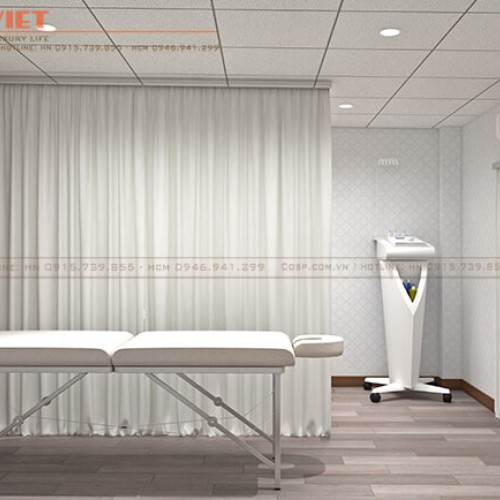Để phù hợp với đặc trưng sử dụng, thiết kế spa Thanh Hoa sử dụng các giường gấp tiện dụng cho phòng chức năng này.