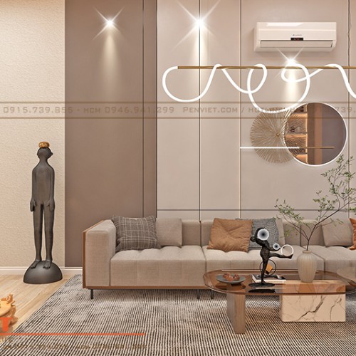 Không những vậy, chúng tôi còn sử dụng nhiều vật dụng trang trí như những bình hoa, bức tượng và cả những bức tranh để làm nổi bật không để căn phòng bị đơn điệu.