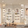 Nhằm tận dụng mặt bằng cũng như giới thiệu tới khách hàng những sản phẩm cũng như phô bày ra những chứng nhận mà cửa tiệm đạt được, chúng tôi khéo léo bố trí tủ trưng bày bằng tủ âm tường kết hợp hệ thống đèn chiếu sáng.