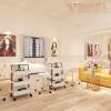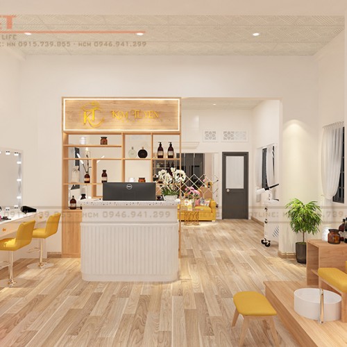 Do hạn chế về diện tích, cơ sở làm đẹp này được các kiến trúc sư tư vấn thiết kế spa theo phong cách hiện đại, sử dụng những gam màu tươi sáng làm chủ đạo không những tôn lên điểm nhấn của tiệm mà còn giúp ánh sáng phản xạ và luân chuyển tốt hơn, tạo cảm giác cửa tiệm rộng rãi, thông thoáng.