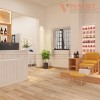 Chúng tôi cũng khéo léo setup kệ mỹ phẩm phía sau quầy thu ngân bằng gỗ MDF phủ melamine. Penviet cũng tinh tế trong việc decor bộ nhận diện thương hiện bằng Mica dẹp cắt CNC vô cùng nổi bật, tạo sự chú ý với khách hàng.