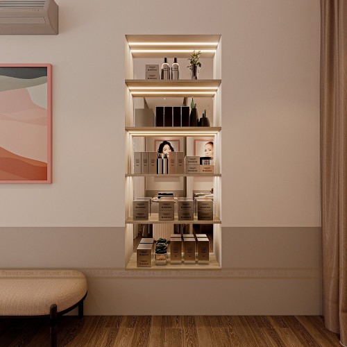 Hệ tủ âm tường để trưng bày sản phẩm, giúp nhân viên thuận tiện tư vấn cũng như khách hàng lựa chọn sản phẩm.