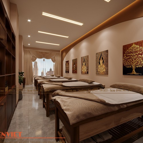 Massage body là dịch vụ phổ biến được nhiều khách hàng ở mọi lứa tuổi ưa chuộng. Hiểu được điều này, mẫu thiết kế spa Cyprus được chúng tôi dành một diện tích lớn cho không gian này với cách bài trí nhẹ nhàng, tinh tế, mang đến trải nghiệm tuyệt vời cho người sử dụng dịch vụ.