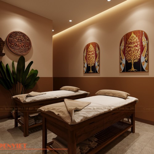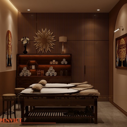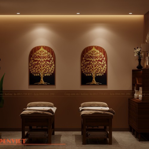 Biết được nguyện vọng sở hữu một cơ sở làm đẹp vừa ấn tượng, vừa chuyên nghiệp, mang những văn hóa Đông Nam Á, Penviet đã tư vấn cho khách hàng phong cách Thái Lan kết hợp những nét Bohemian khiến cho mẫu thiết kế spa vừa mang nét quyến rũ, huyền bí, vừa có những nét phóng khoáng, bay bổng.