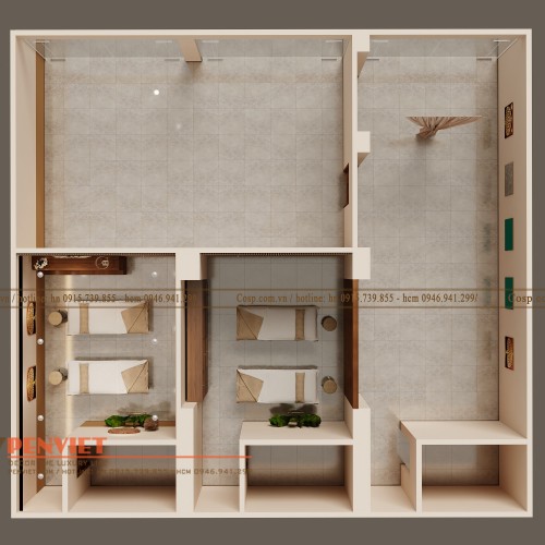 Penviet tận dụng triệt để mặt bằng 160m2, bố trí khéo léo để đảm bảo đầy đủ các phòng, khu vực chức năng. Không những thế, với phòng trị liệu lớn trong mẫu thiết kế spa này, chúng tôi còn tinh tế lựa chọn rèm che nhằm mang đến sự thoải mái, riêng tư cho khách hàng.
