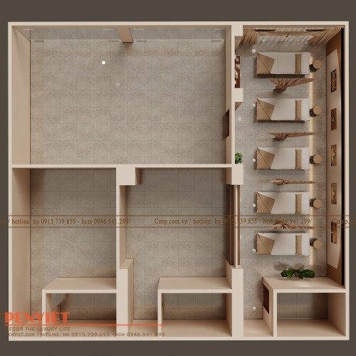 Mẫu thiết kế nội thất spa Cyprus mang đến cho chủ đầu tư một giải pháp không gian hoàn hảo. Mong rằng, đây cũng sẽ là một gợi ý thú vị để bạn setup cửa tiệm của mình. Liên hệ ngay với Penviet để được tư vấn những phương án thiết kế độc đáo nhé!