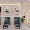 Với tone màu chủ yếu là trắng và vàng sáng, không gian hiện lên đầy kiêu kì, lộng lẫy. Nhờ gam màu sáng giúp tổng thể spa đẹp như được mở rộng tạo cảm giác thông thoáng, trang nhã. Lấy điểm nhấn là màu xanh dương của nội thất giúp không gian vẫn giữ được nét thanh lịch mà không bị nhạt nhòa.