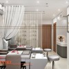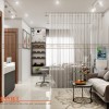 Với diện tích mặt bằng là 50m2, 1 phòng ngủ, 1 phòng khách và 1 nhà vệ sinh, chúng tôi tư vấn cho chị Hòa thiết kế không gian phòng khách trở thành nơi tiếp đón khách hàng kết hợp với phòng gội, thiết kế rèm che đảm bảo sự riêng tư. Phòng ngủ sẽ được thiết kế, trang trí để tạo thành phòng spa mang đến sự thoải mái và yên tĩnh.