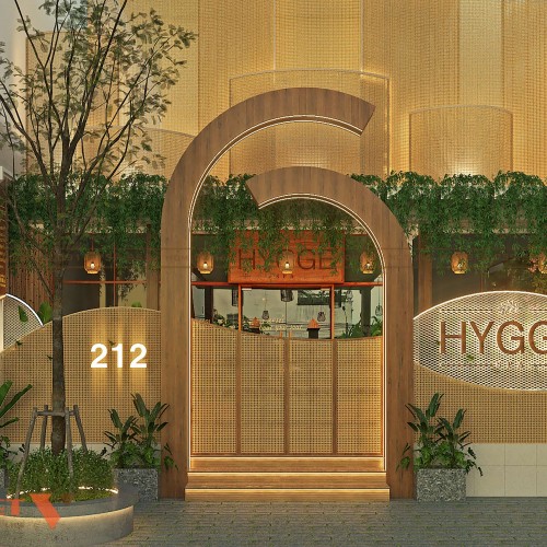 Dựa trên hình ảnh minh họa, mặt tiền cửa hàng HYGGE được thiết kế vô cùng tinh tế và độc đáo, tạo nên một không gian ấn tượng và thu hút ngay từ cái nhìn đầu tiên. Dưới đây là các chi tiết nội thất và thiết kế nổi bật: