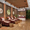 Toàn bộ diện tích spa dùng để bố trí 4 ghế ngồi chăm sóc massage chân cho khách hàng và quầy thu ngân. Sự sắp xếp gọn gàng, ngăn nắp các đồ nội thất này mang đến cho spa sự chuyên nghiệp khi hoạt động.